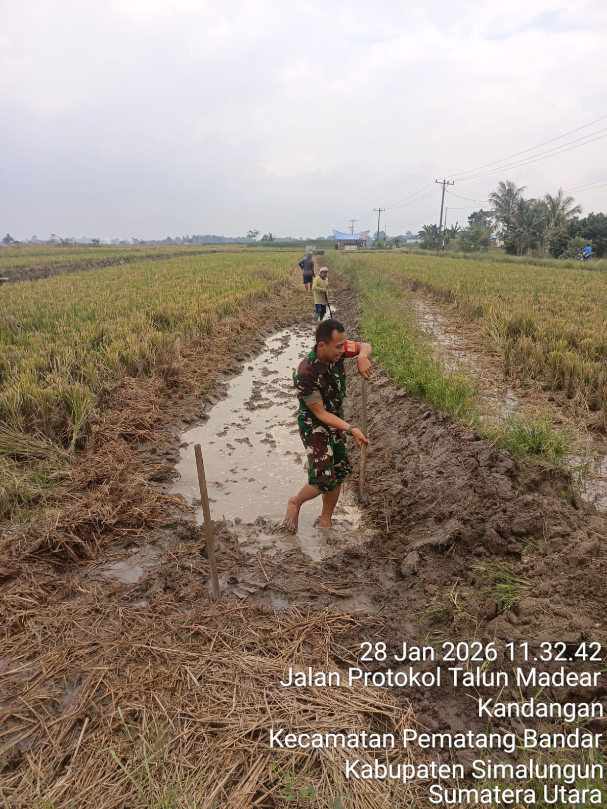 Dalam kegiatan tersebut, Kopda Rahmayadi turun langsung ke sawah mendampingi Bapak Pangihutan Hutagaol dalam proses pembuatan bedeng/tanggul sawah sebagai tahap awal sebelum pengolahan lahan persawahan. Pembuatan tanggul ini bertujuan untuk mengatur aliran air agar lahan siap ditanami dan hasil panen dapat lebih maksimal.